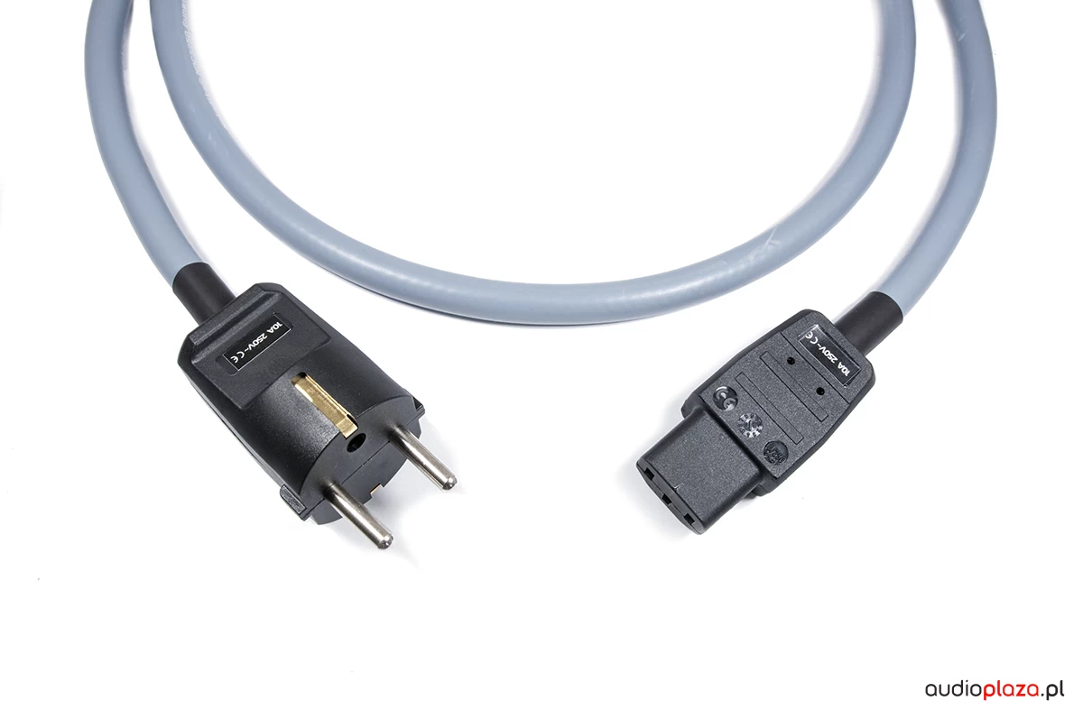 Zakończony wtykiem schuko oraz gniazdem IEC C13 (typowe gniazdo stosowane w większości wzmacniaczy)